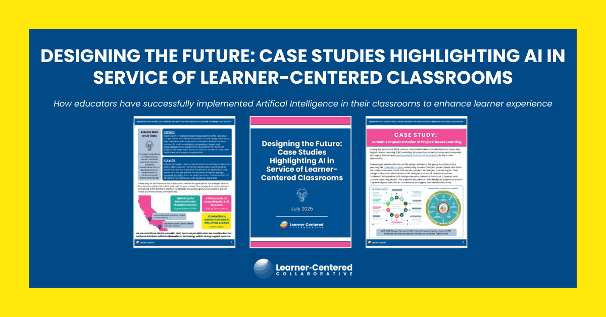 The question isn’t if AI will play a meaningful role in education and learning, but how. Will it be used to further entrench outdated models of efficiency and compliance? Or, can we harness its potential to accelerate a shift toward something more human, more personalized, and more learner-centered? At Learner-Centered Collaborative, we believe AI…