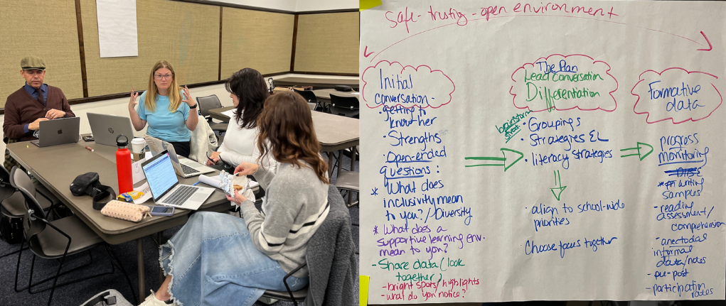 On a sunny January “winter” day in Santa Ana, California, a group of Assistant Principals huddle around a case study that chronicles a common scenario in their (and many) school districts: a new teacher is struggling with reading instruction and classroom management, and her students report feeling bored and disengaged. The school leaders collaborate with their small groups to develop a year-long coaching strategy for the teacher depicted in the case study, anchoring their analysis in different data “elevations,” from student interview data, to classroom assessments, to standardized testing scores (Safir and Dugan, 2021). Together, the group develops a poster to represent the leadership values and the coaching strategies they will employ, drawing on their learning from the year-long  Learner-Centered Leadership Academy.