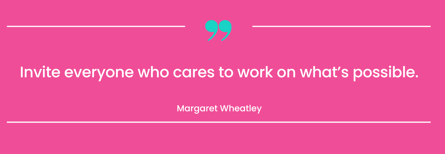 Think deeply about the voices you often hear, and those you don’t. Ask what has prevented those voices from previously being included. Strategize to create an inclusive opportunity, whether through virtual sessions, language translation, or scheduling around normal business hours. The goal is to hear from as many people as possible to shape the work ahead.