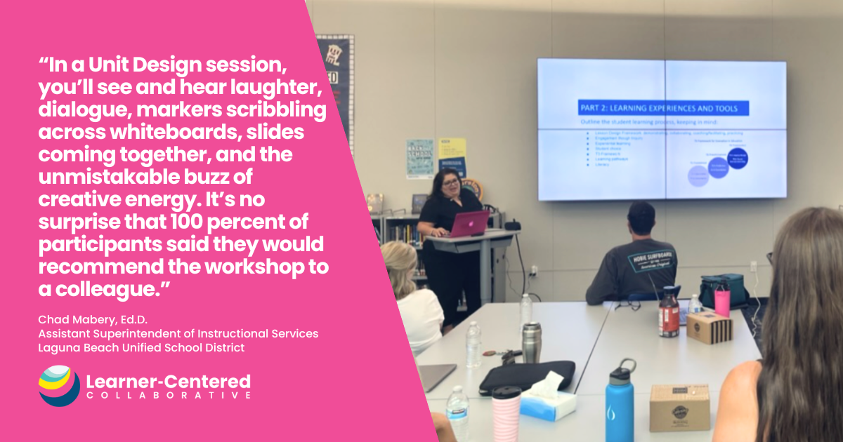 This partnership offered two opt-in Pathways for Educator courses, a Learner Agency pathway and a Demonstrated Competency & Assessment pathway, open to all teachers in the state. Designed to further support and enable educators to implement PCBL, the sessions, led by Learner-Centered Collaborative, explored ways to build learner agency, demonstrate competency, and align assessment to desired outcomes, all while encouraging educators to test learning experiences that implement PCBL in the classroom and build portfolios reflecting on these experiences.
