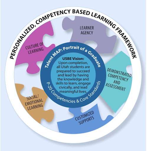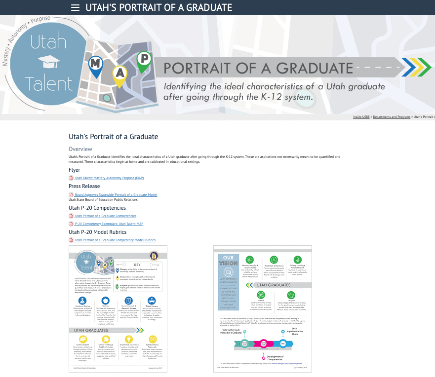 The Utah State Board of Education (USBE) partnered with Learner-Centered Collaborative to build capacity and enable USBE specialists and coordinators to support implementation of the state’s Personalized, Competency-Based Learning (PCBL) framework, a learning model that includes 5 components necessary to nurture learner-centered outcomes as defined in the state’s Portrait of a Graduate. Together, the framework and Portrait of a Graduate help Utah’s learning community, from the state system all the way to the classroom, navigate learners to a future where they can succeed and lead.
