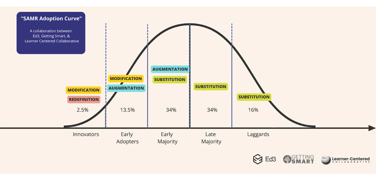 Mapping SAMR to the adoption curve helps leaders set realistic expectations and design more effective supports.