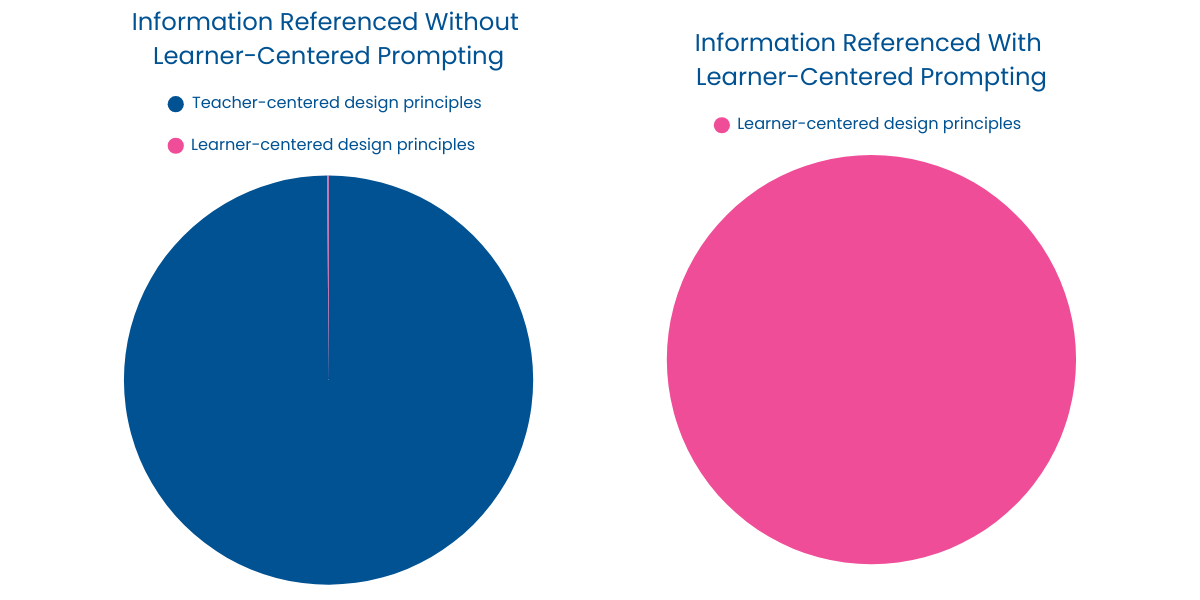 - With the learning model and learner-centered strategies included in the prompt context